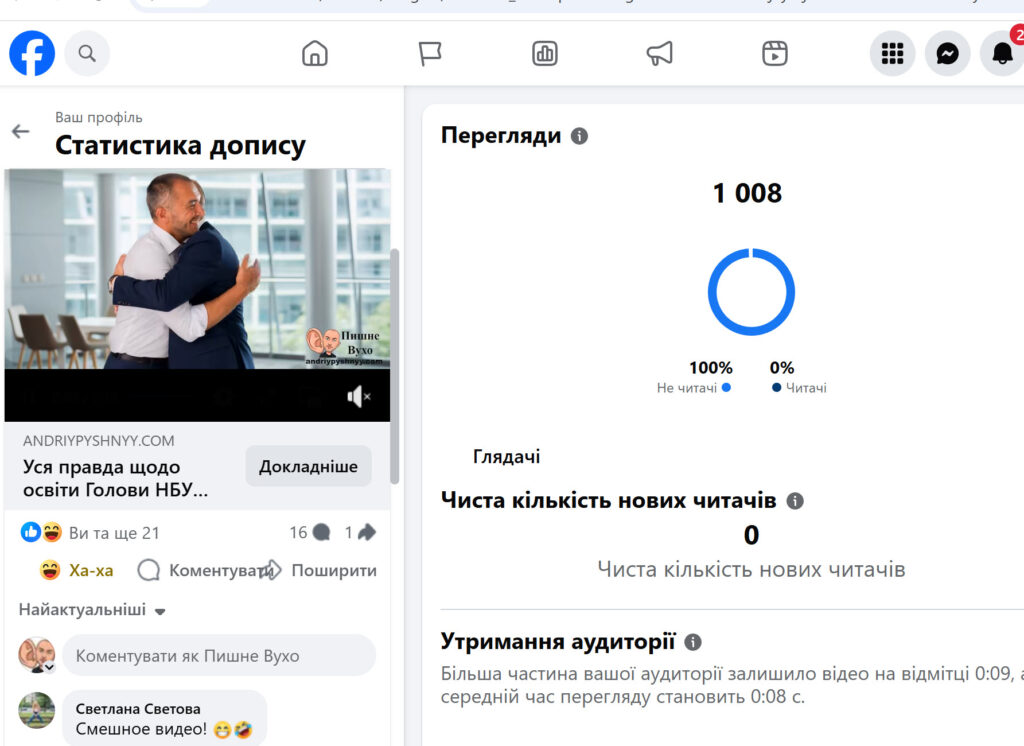 А особисто для Детектор медіа та піарників, які будуть чухати вухо Андрію Григоровичу про “ботів”, надаємо скріни про успішний старт рекламної кампанії з охопленням по всій Україні)). Тому переглядів буде дуже багато )))